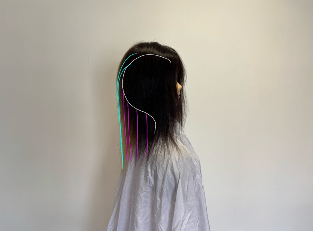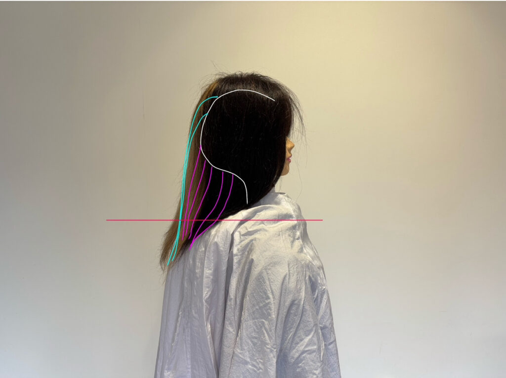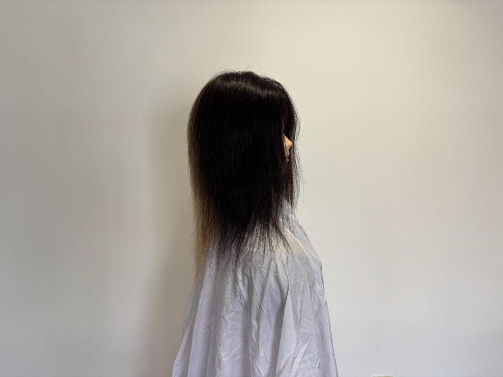問題1 肩より長い髪、髪が真下に落ちない