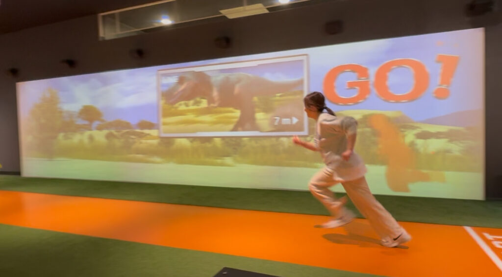 ティラノサウルスが後ろから襲ってきてるのにジョギングのyuki。でも逃げ切ってた。