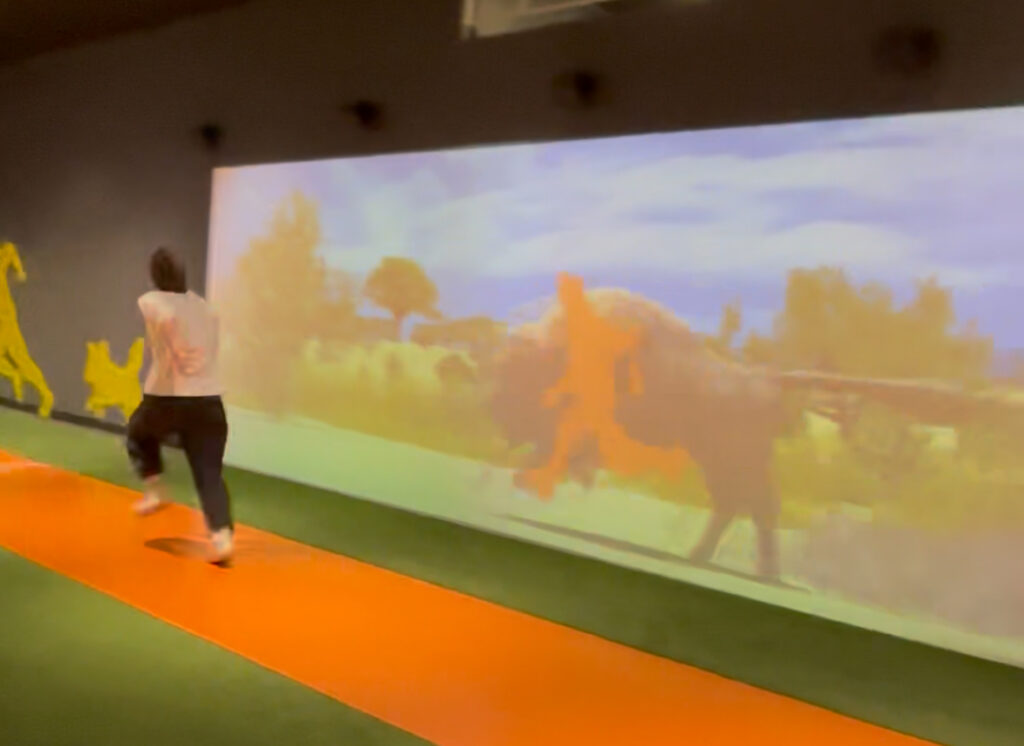 こんな感じの大型画面を使った体を使うゲームを120分たっぷり遊んで堪能。